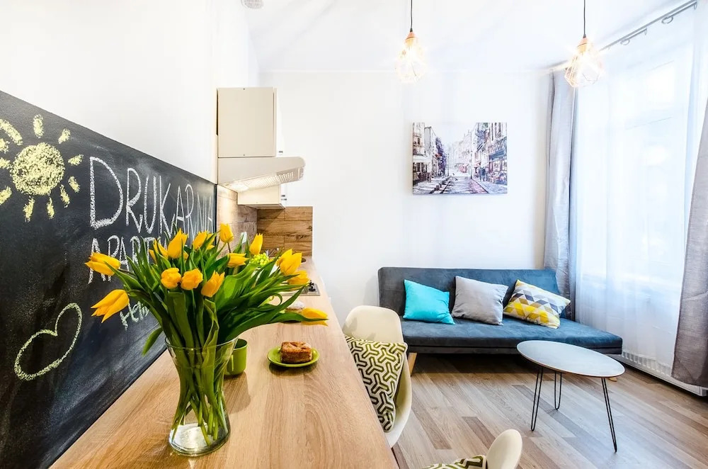 Отель Drukarnia Apartments, адрес на карте Лодзь, Sklodowskiej-Curie, с характеристиками номеров и доступностью онлайн бронирования на площадке ВашОтель.RU , стоимость проживания и удобства.