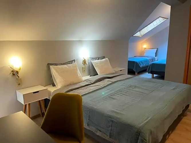 Номер уютно обставлен и оснащён необходимым, чтобы отдохнуть после долгого и насыщенного дня. Имеются телевизор. Перечисленные услуги есть не во всех номерах.
