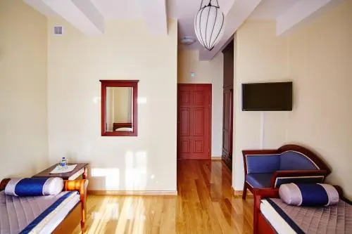 В номере вас будут ждать душ и телевизор. Оснащение зависит от выбранной категории номера.