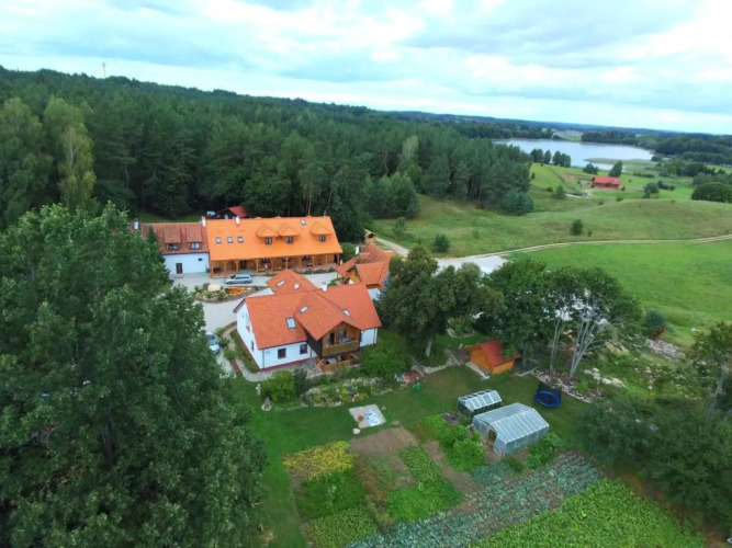 Отель Warmińskie Uroczysko, адрес на карте Ольшина, Rasząg 44, 11-300 Biskupiec, Poland, с характеристиками номеров и возможностью онлайн бронирования на сайте vashotel.ru , стоимость проживания и удобства.
