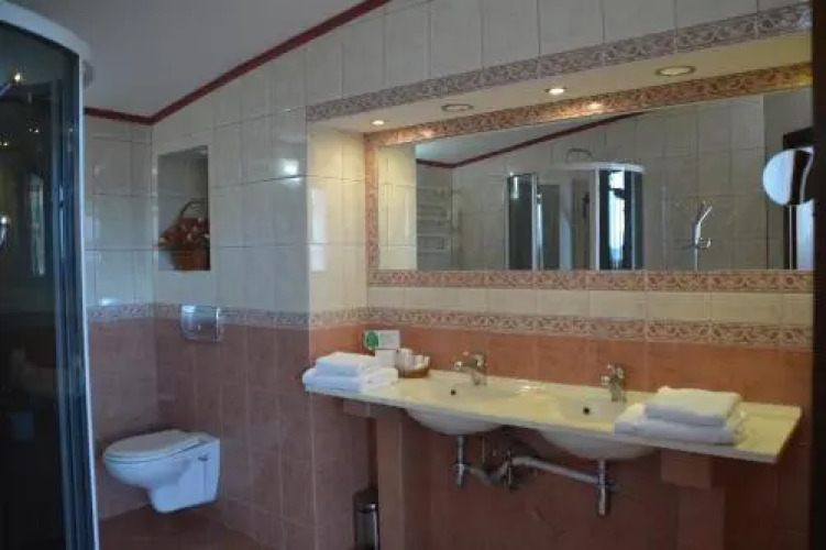 В номере вы найдёте душ и телевизор. Оснащение зависит от выбранной категории номера.