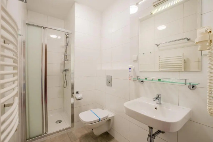 В номере вы найдёте душ и телевизор. Оснащение зависит от выбранной категории номера.