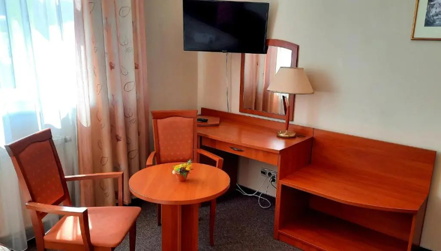 В номере гостей ждут телевизор. Оснащение зависит от выбранной категории номера.
