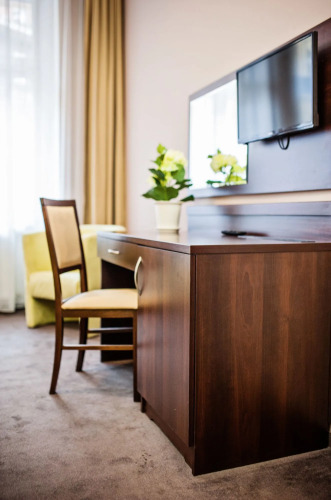 В номере вы найдёте душ и телевизор. Оснащение зависит от выбранной категории номера.