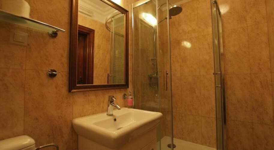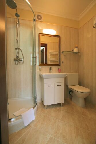 В номере вы найдёте душ и телевизор. Оснащение зависит от выбранной категории номера.