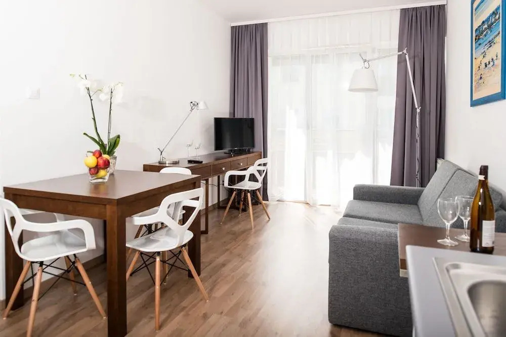 Также для гостей в апартаментах: массажный кабинет, сауна и паровая баня. Здесь рады животным. Допускается размещение с питомцами. Удобно для гостей с ограниченными возможностями: на верхние этажи гостей поднимает лифт. Персонал апартаментов говорит на английском, немецком и польском.