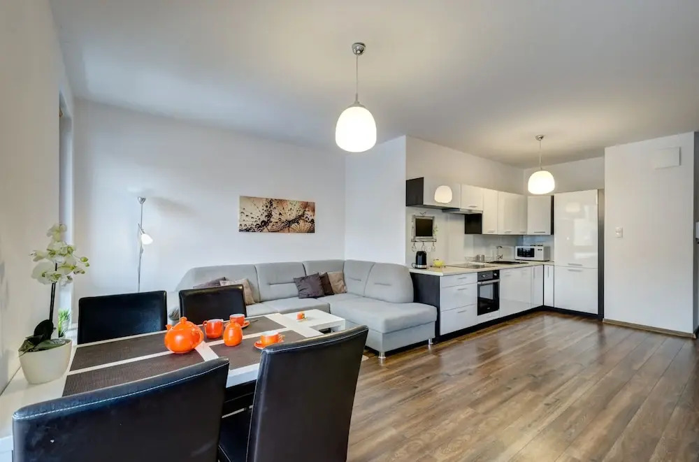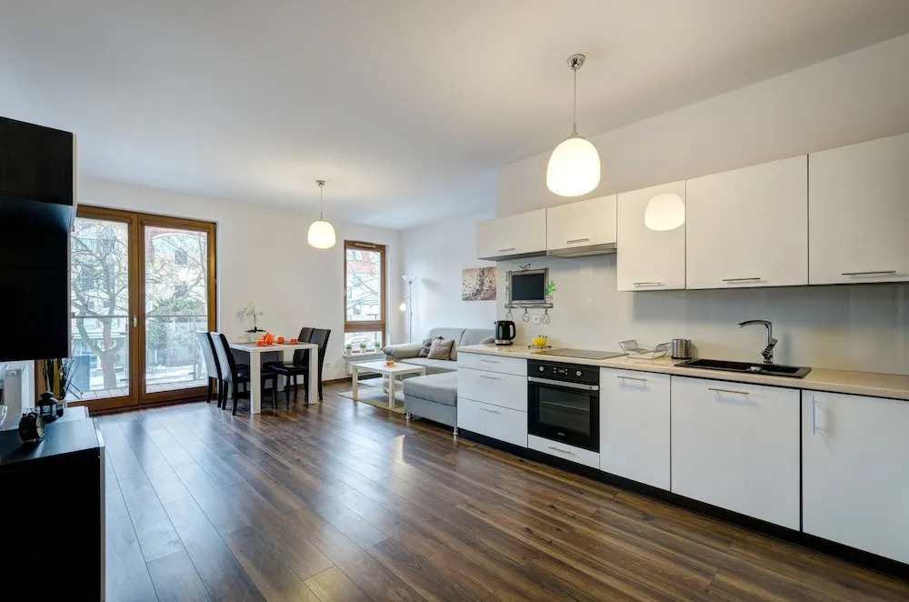 Удобно для гостей с ограниченными возможностями: на верхние этажи гостей поднимает лифт. Сотрудники апартаментов поддержат беседу на английском и польском.