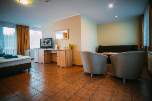 В номере вы найдёте телевизор. Перечисленные услуги есть не во всех номерах.