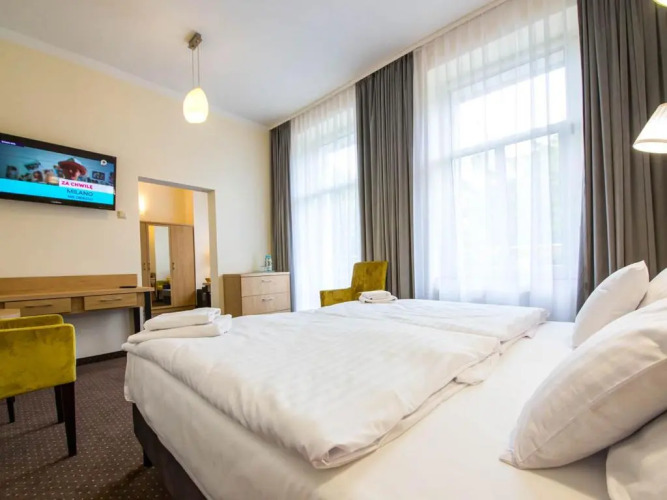 Parking is subject to availability due to limited spaces. Due to Coronavirus (COVID-19), this property is taking steps to help protect the safety of guests and staff. Certain services and amenities may be reduced or unavailable as a result. In response to Coronavirus (COVID-19), additional safety and sanitation measures are in effect at this property. Extra beds are available upon request for PLN 60 per night for children up to 14 years old. There are four private parking spaces by the hotel, but their availability is limited. Parking cannot be reserved in advance. The rooms on the full floors are accessible by an elevator, while the rooms on the half floors are accessible by stairs from the full floors.