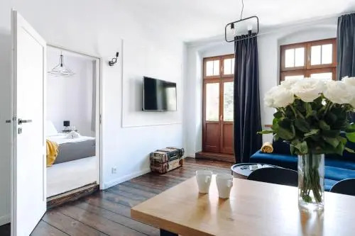 Персонал апартаментов говорит на английском и польском.