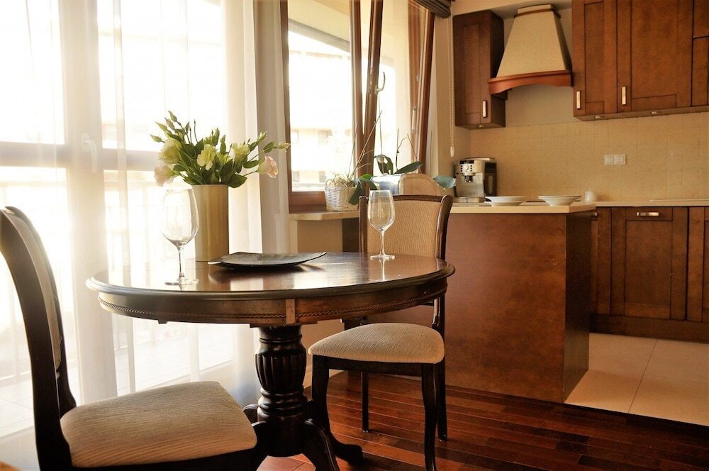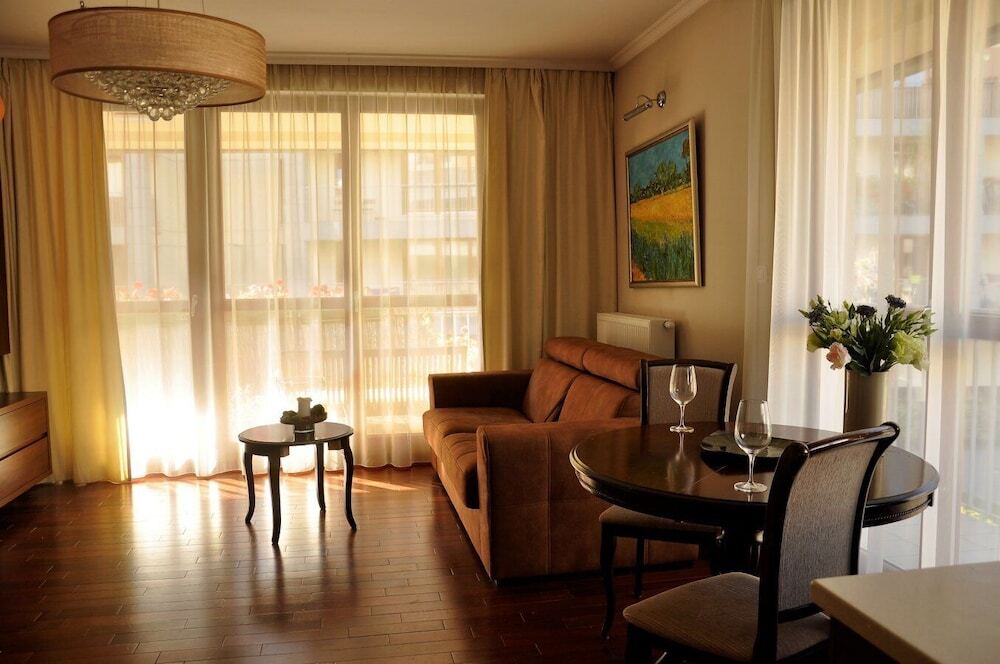 А ещё в распоряжении гостей химчистка и гладильные услуги. Сотрудники апартаментов поддержат беседу на английском, немецком и польском.