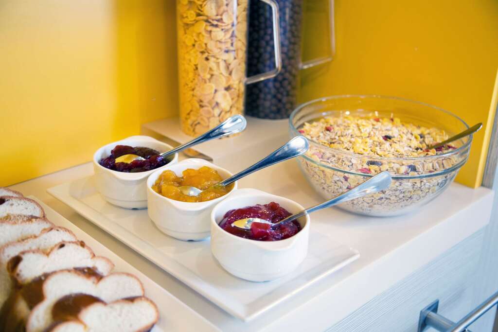 Каждое утро в зале для завтраков отеля Première Classe Varsovie / Warszawa гостей ожидает завтрак "шведский стол".
