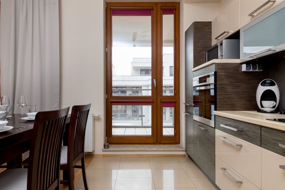 Отель Wilanów 2-Bedroom Apartment, адрес на карте Варшава, Sarmacka 19, Wilanów, 02-972 Warsaw, Poland, с описанием номеров и доступностью онлайн бронирования на ресурсе vashotel.ru , стоимость проживания и удобства.