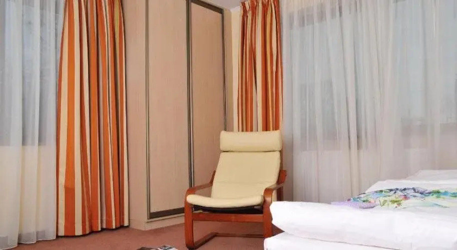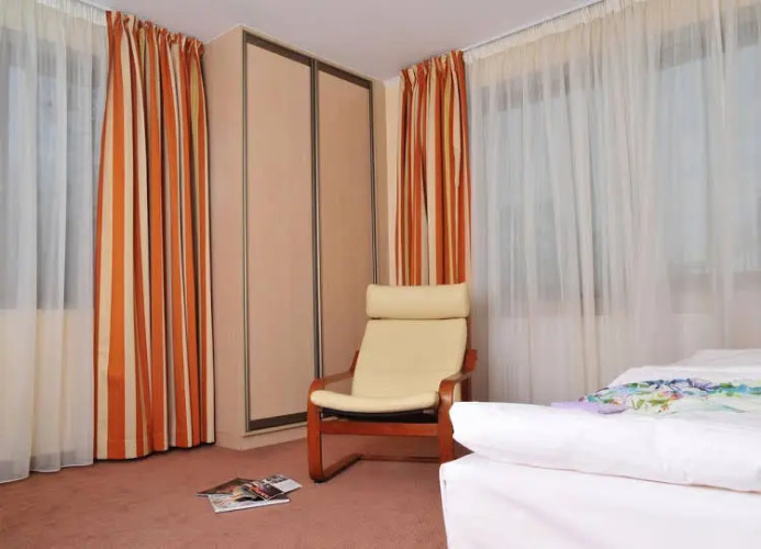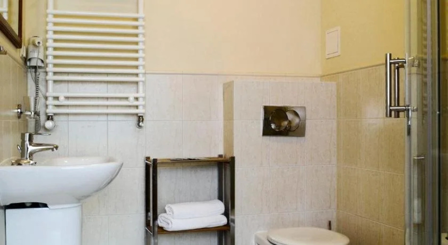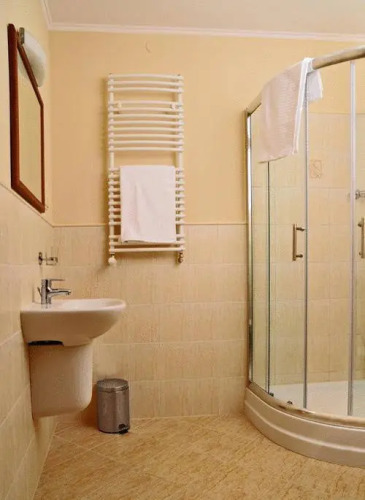 В номере вы найдёте душ и телевизор. Оснащение зависит от выбранной категории номера.