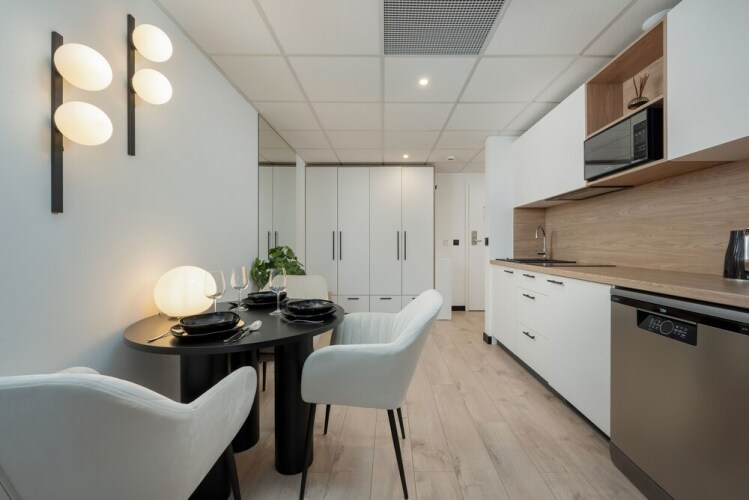 Отель Elegant Apartment in Wroclaw by Renters, адрес на карте Вроцлав, Dyrekcyjna 1, 242A, с описанием номеров и возможностью онлайн бронирования на ресурсе ВашОтель.RU , стоимость проживания и удобства.
