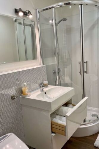 В номере вы найдёте душ и телевизор. Оснащение зависит от выбранной категории номера.