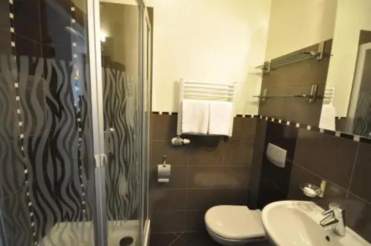 В номере вы найдёте душ и телевизор. Оснащение зависит от выбранной категории номера.