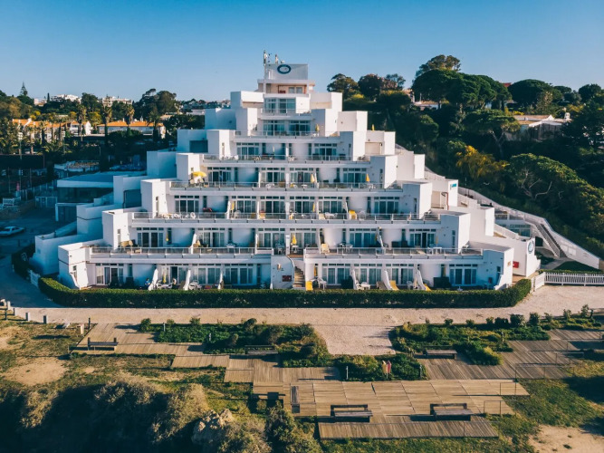 Апартаменты Muthu Clube Praia da Oura, адрес на карте Албуфейра, Praia da Oura, Rua Oliveira Martins, 8200-269 Albufeira, с описанием номеров и возможностью онлайн бронирования на площадке vashotel.ru , цены проживания и удобства.