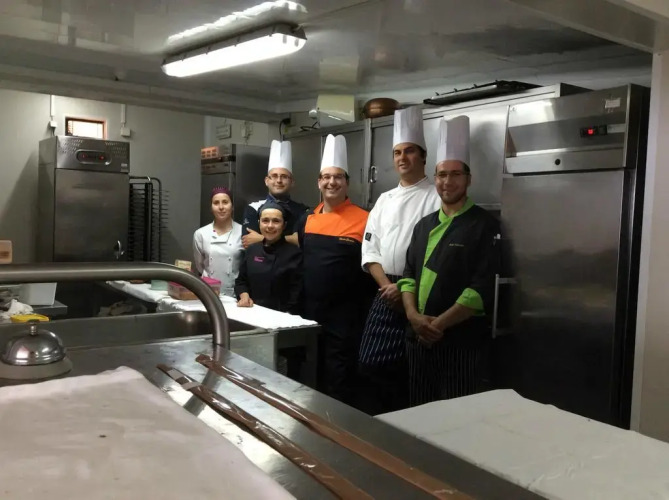 Обеденная зона состоит из ресторана и бара-гостиной, проводится обслуживание номеров по расписанию. На всей территории есть доступ в интернет.