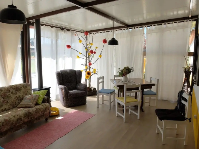 Бесплатный Wi-Fi на территории поможет всегда оставаться на связи. Если вы путешествуете на машине, припарковаться можно будет на парковке рядом. Среди развлечений на территории — площадка для пикника и площадка для барбекю. Берите питомца с собой. В коттедже возможно размещение с домашним любимцем.