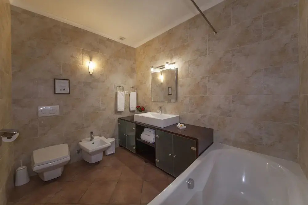В номере вы найдёте телевизор. Оснащение зависит от выбранной категории номера.