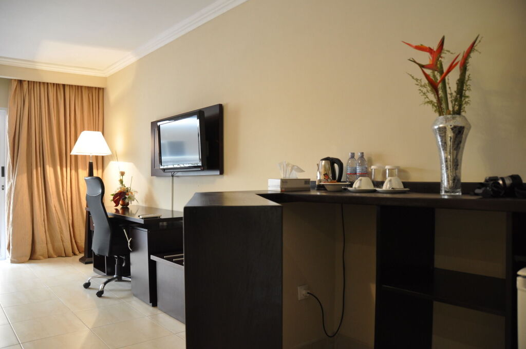 Номер уютно обставлен и оснащён необходимым, чтобы отдохнуть после долгого и насыщенного дня. Имеются телевизор и мини-бар. Оснащение зависит от выбранной категории номера.