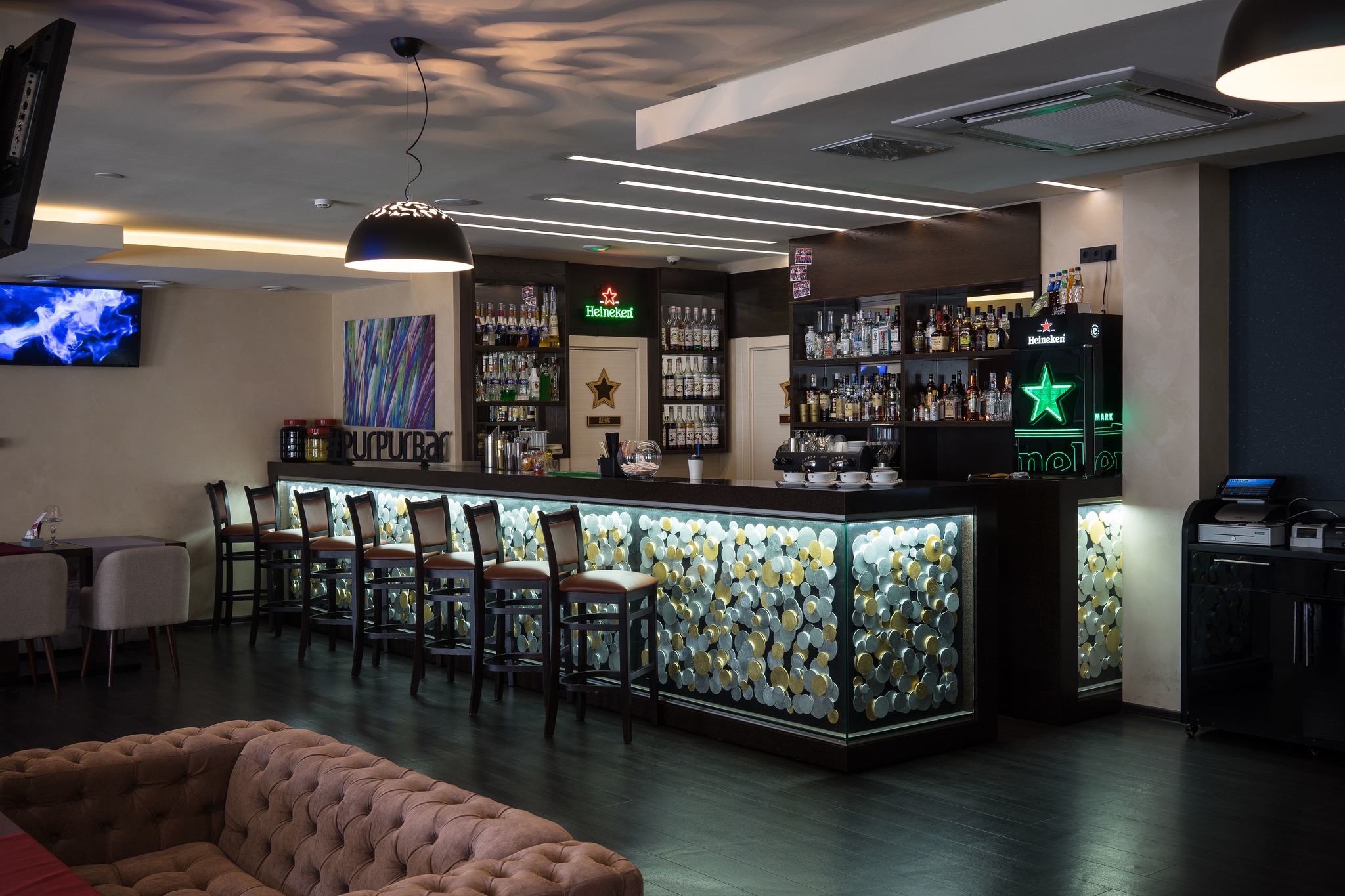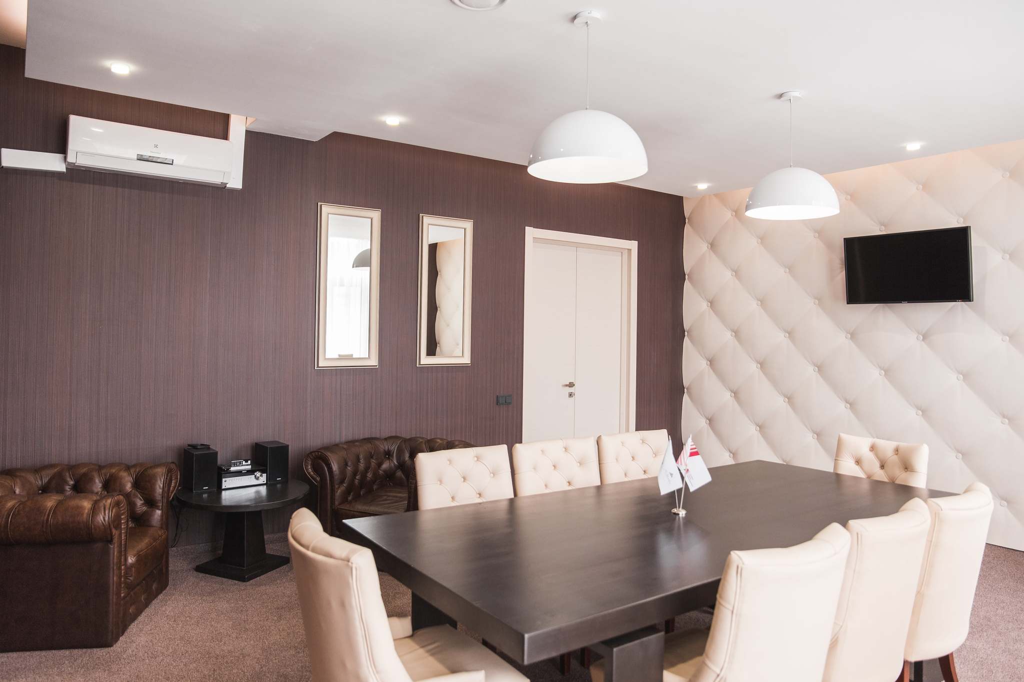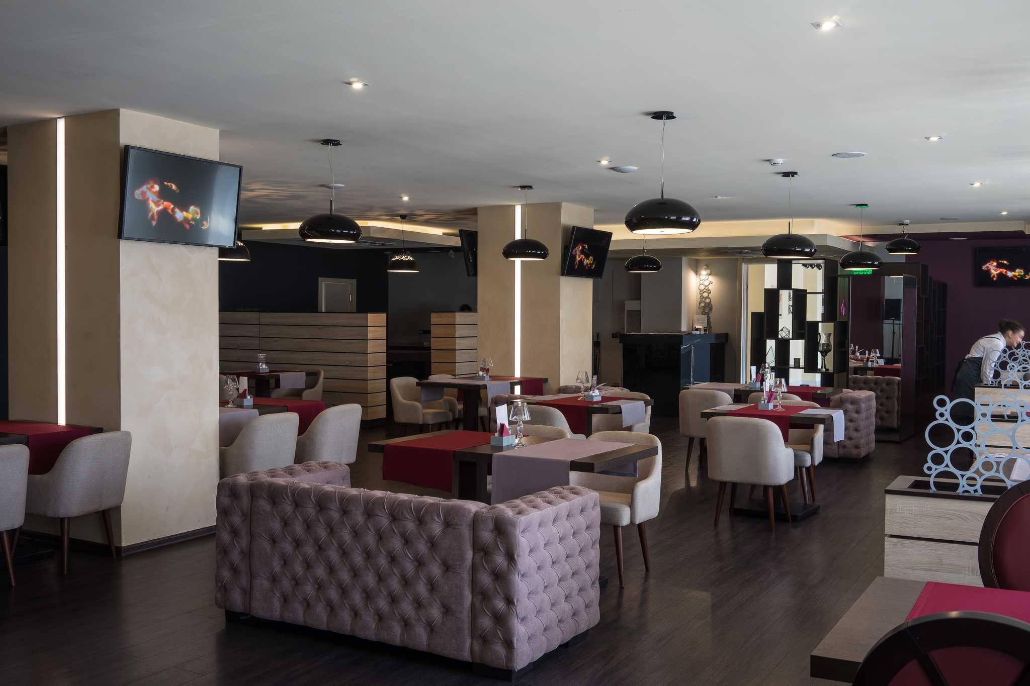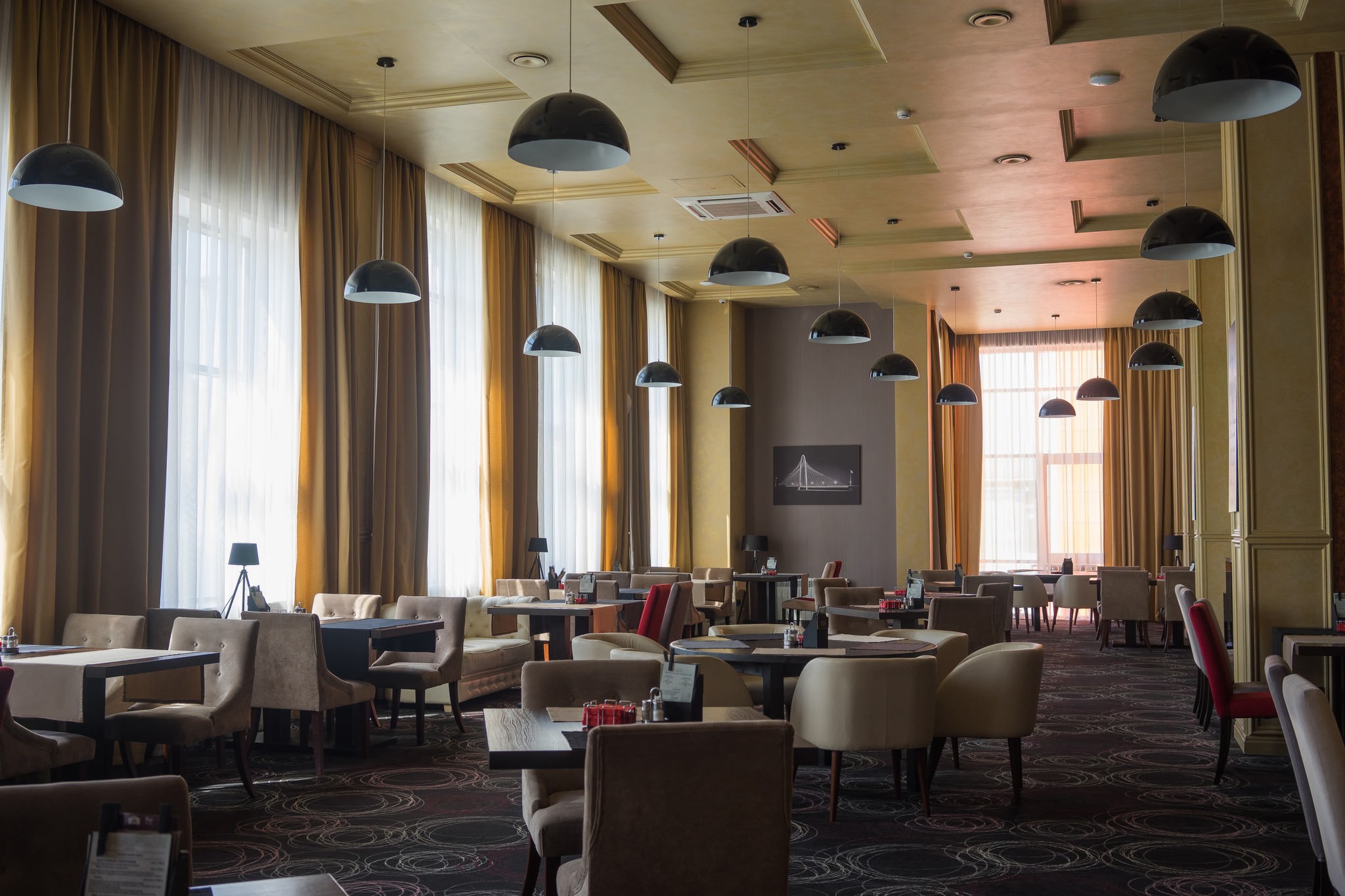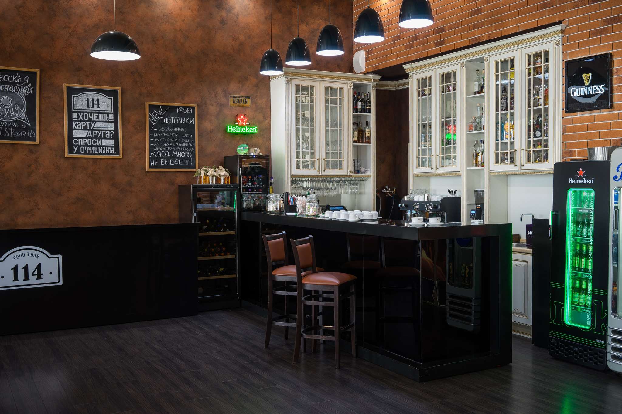 Отдельно стоит сказать о ресторанах, занимающих два этажа отеля. «Food&Bar 114» – демократичное заведение с современной интернациональной кухней и богатым коктейльным меню. Ресторан авторской кухни «Марко Поло» - прекрасное место для деловых и личных встреч. Стоит отметить, что помимо ставшего уже традиционным сочетания русской и европейской кухонь, особое внимание будет уделяться национальным блюдам Хакасии.