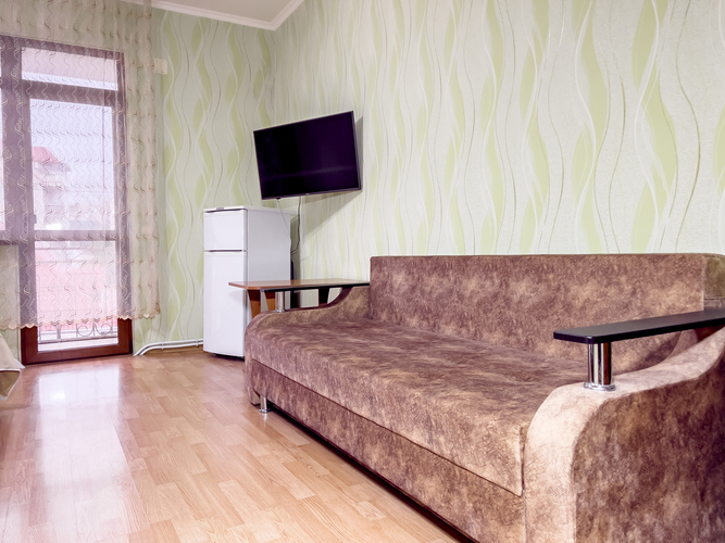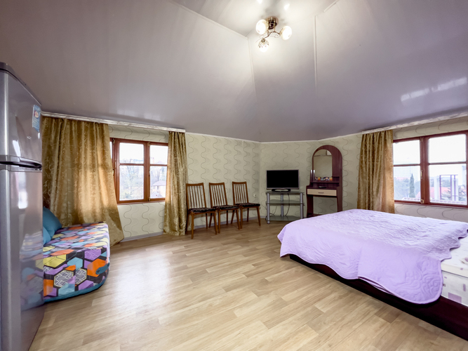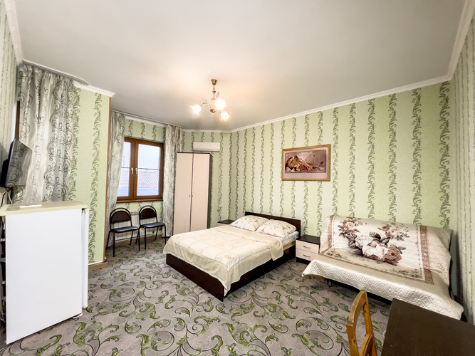 В гостевом доме в наличии два 3-х местных номера. В каждом номере двуспальная кровать, односпальное кресло, кондиционер, холодильник, телевизор. Номера на 3 и 4 этаже.
