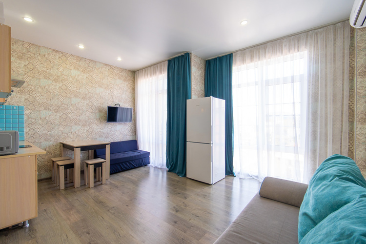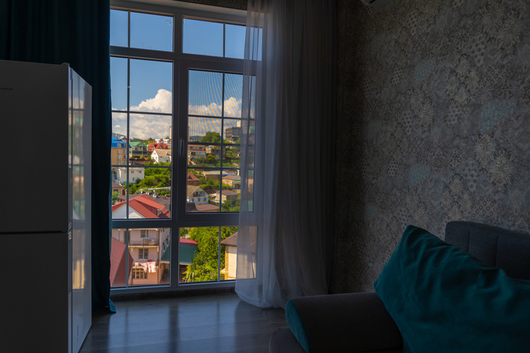 Уютная квартира с панорамными окнами от LetoApart Красивый вид 20 минут пешком до бесплатного пляжа "Весна", до моря ходит трансфер. Два двухспальных дивана, Евро-раскладушка (2+1+1) Во дворе детская площадка Тихий район Недалеко Пятёрочка и все нужные магазины В квартире есть все необходимое для комфортного проживания: • Wi-Fi (100 мбит/с) • Телевизор (цифровое ТВ более 100 каналов) • Холодильник • Стиральная машина • А также: постельное белье, полотенца, ванные принадлежности.
