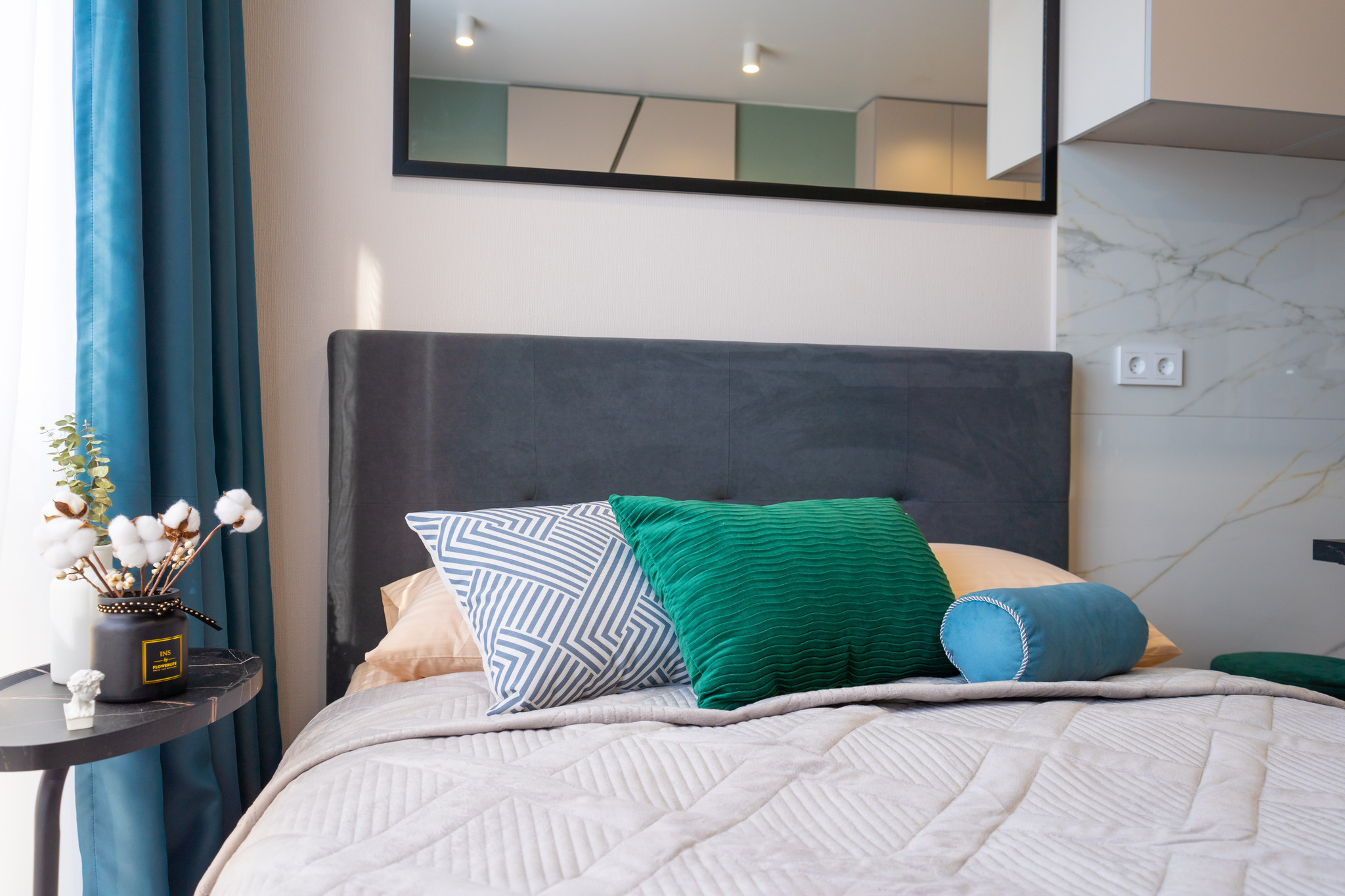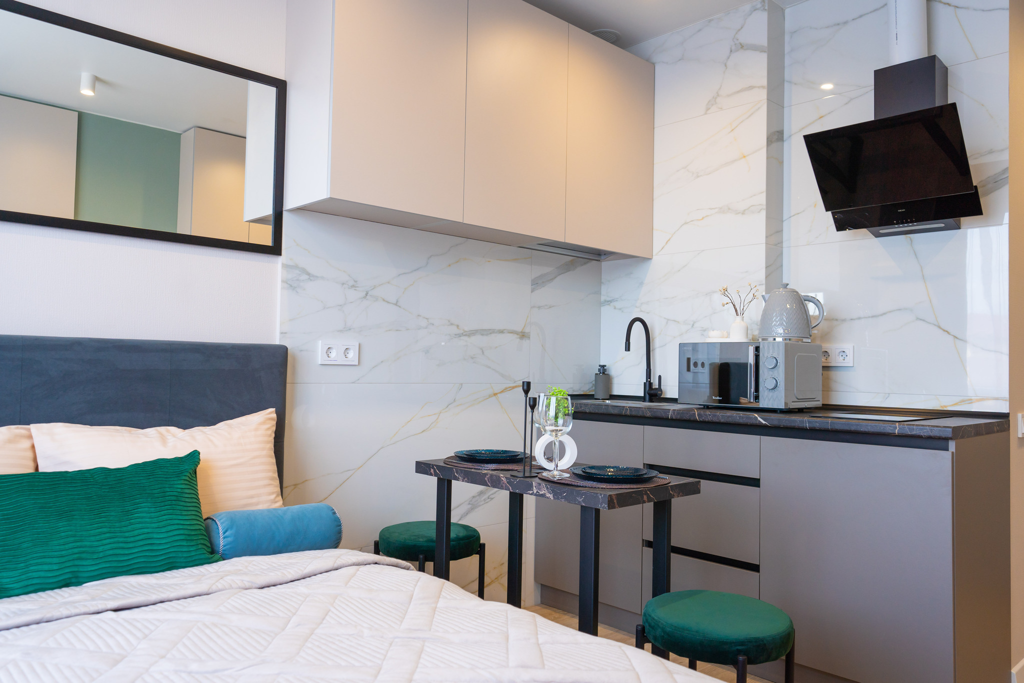 В квартире новый качественный ремонт и техника. Красивая посуда и элементы декора для вашего уюта и красивых фотографий. Плотные шторы.