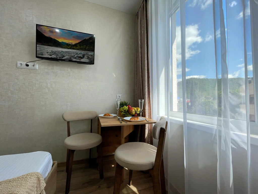 Номер уютно обставлен и оснащён необходимым, чтобы отдохнуть после долгого и насыщенного дня. Имеются телевизор. Перечисленные услуги есть не во всех номерах.