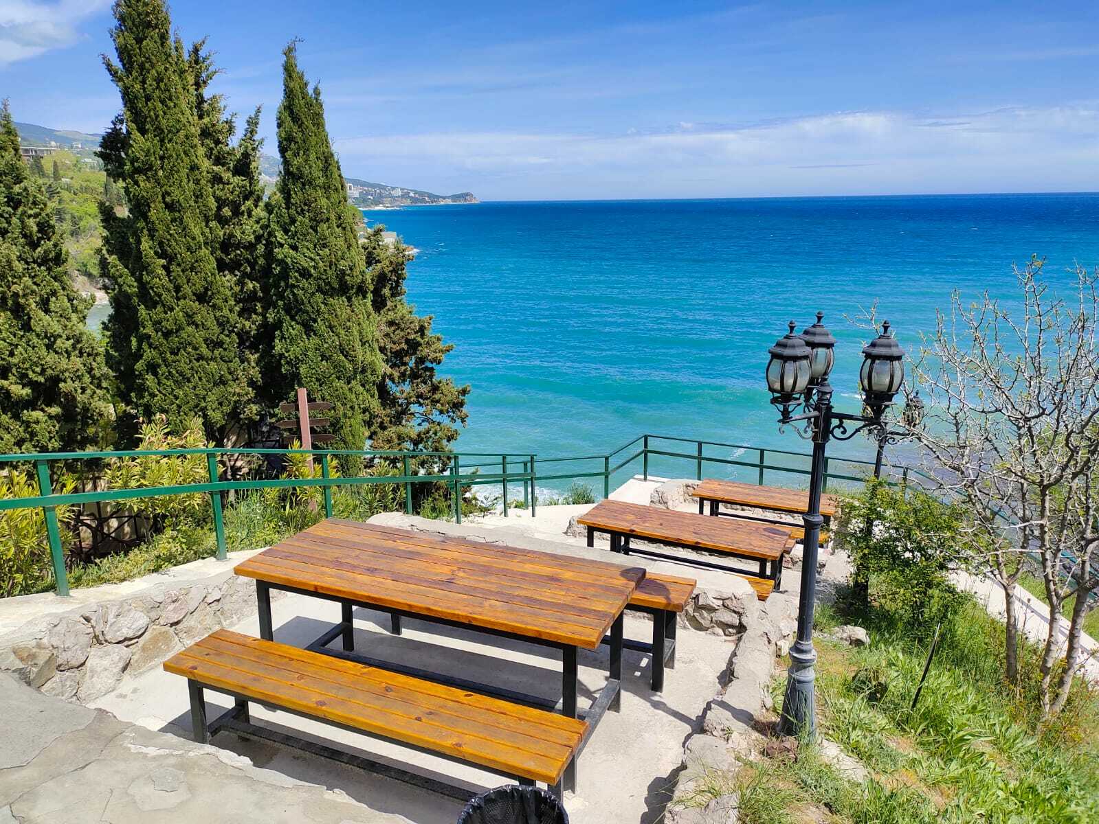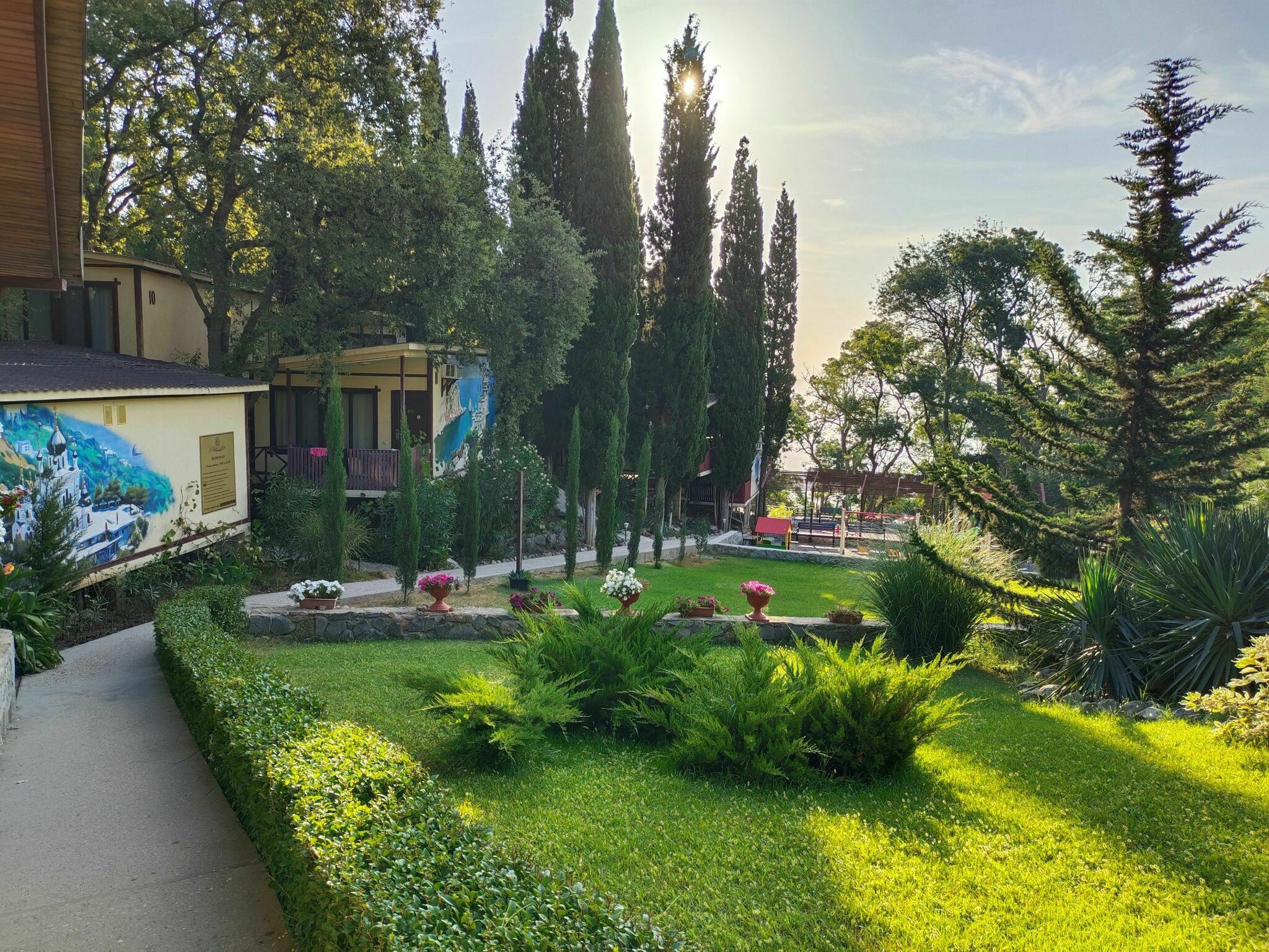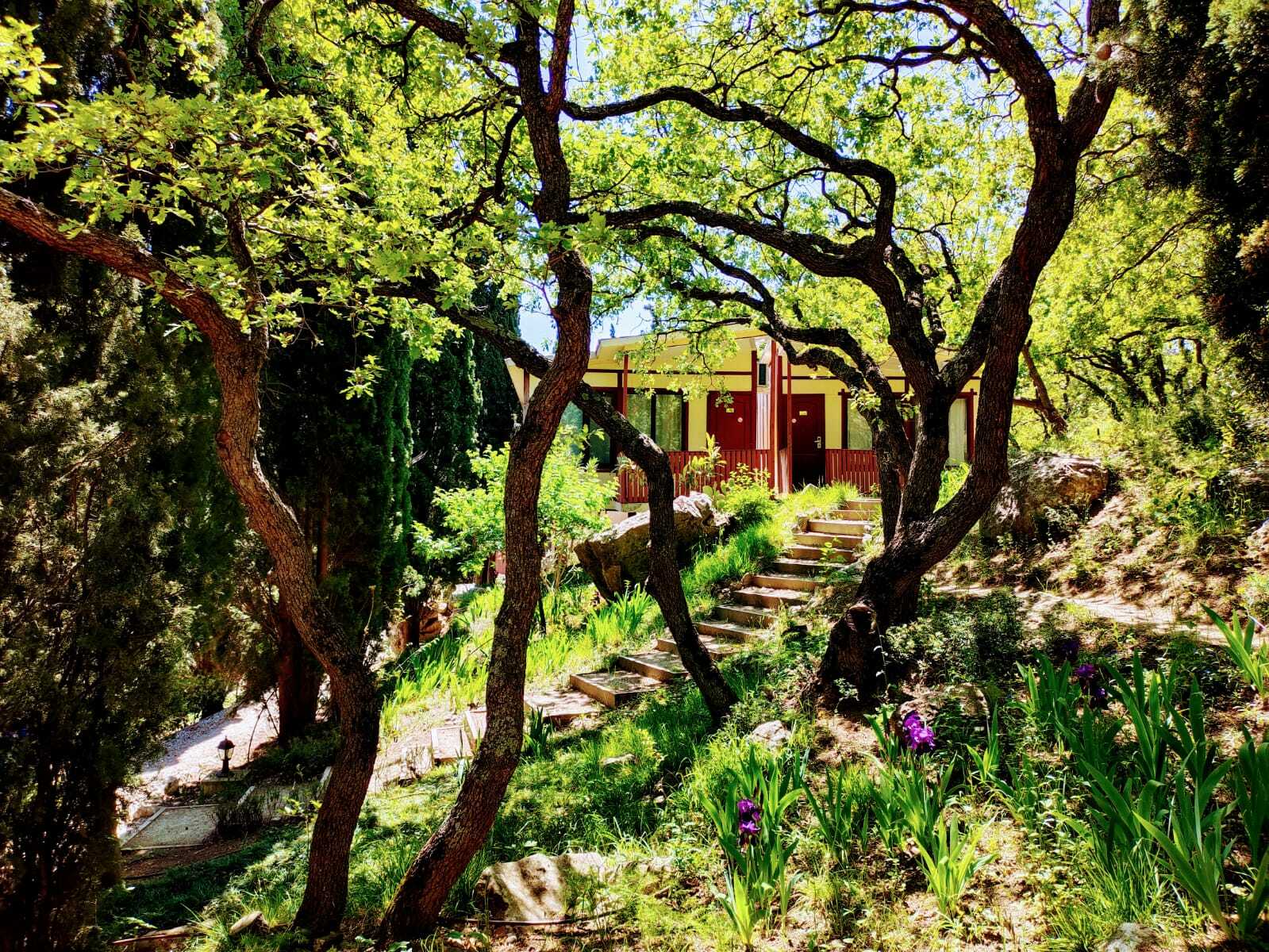 «Зеленый мыс» расположен на территории площадью 1,5 га, на первой береговой линии г. Алупки, в двух минутах ходьбы от пляжа.