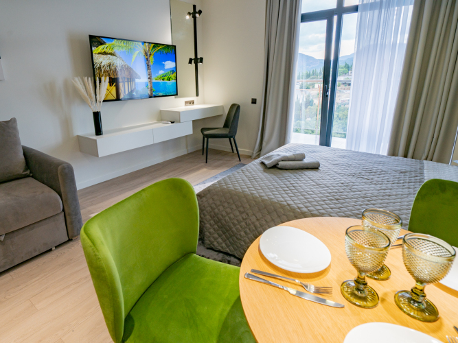 Апартаменты Стиль Жизни, адрес на карте Алушта, улица Западная, д. 4/3, с характеристиками номеров и возможностью онлайн бронирования на сайте vashotel.ru , цены проживания и удобства.