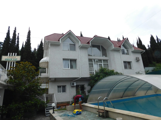 Гостиница Kara-Deniz Villa, адрес на карте Алушта, ulitsa Oktyabr'skaya, 18a, Alushta, Russia, с описанием номеров и доступностью онлайн бронирования на ресурсе vashotel.ru , цены проживания и удобства.