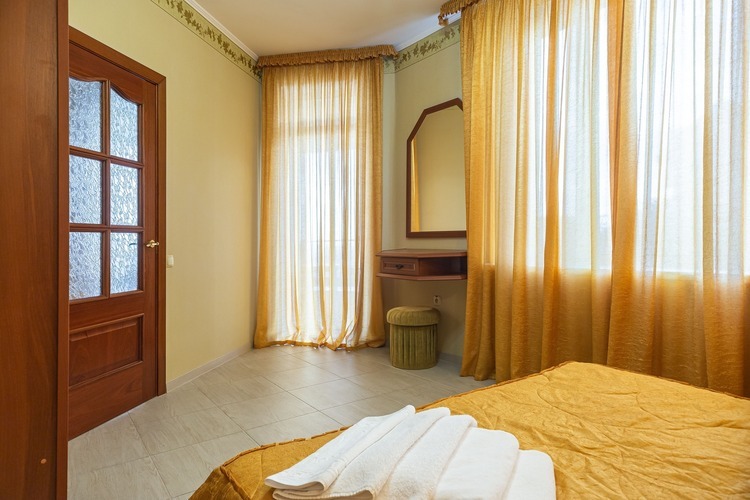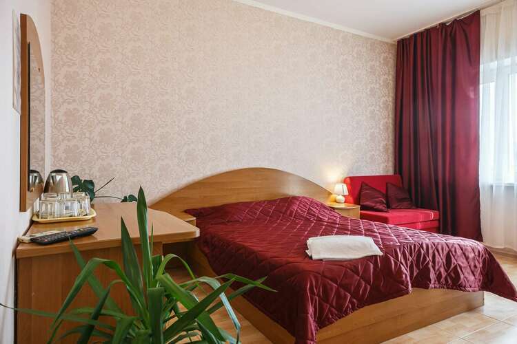 Комфортный 2-х местный, номер 35 м.кв., без балкона. В комнате двуспальная кровать, раскладной двух спальный диван,два кресла, столик, спутниковое телевидение, холодильник, чайник, шкаф для одежды, сейф. Ванная комната с душевой кабинкой, горячая и холодная вода круглосуточно.Без балкона.