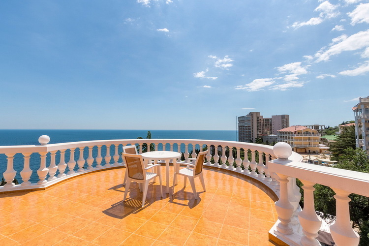 Комфортный 2-х комнатный номер , 44 м.кв., с открытой террасой 16 м.кв. с видом на море. В гостиной кондиционер,раскладной диван, два кресла,плазменный телевизор, холодильник, чайник, сейф. В спальне кондиционер, двухспальная кровать,шкаф для одежды,зеркало и пуфик для макияжа. Ванная комната с душевой кабинкой. Большой балкон со столиком,стульями и видом на море.