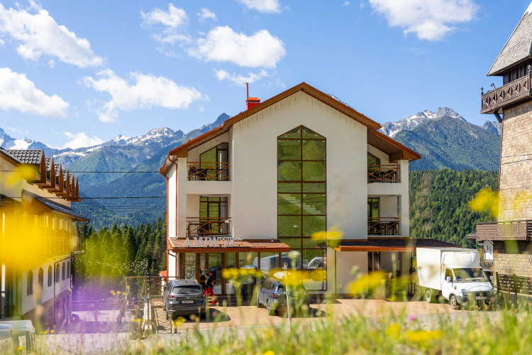 Гостиница Амра, адрес на карте Архыз, улица Ленина, д.30В, с описанием номеров и доступностью онлайн бронирования на ресурсе vashotel.ru , стоимость проживания и удобства.