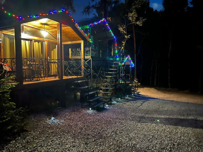 База отдыха «Архызская сказка» находится в километре от села Архыз, в окружении леса и гор.
