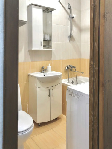 В распоряжении гостей двуспальная кровать с ортопедическим матрасом. В квартире есть набор посуды, чай, кофе, сахар, масло. Для удобства гостей предоставляются шампунь, бальзам для волос, гель для душа, фен, утюг, гладильная доска, сушилка, средства для ухода за одеждой и обувью.