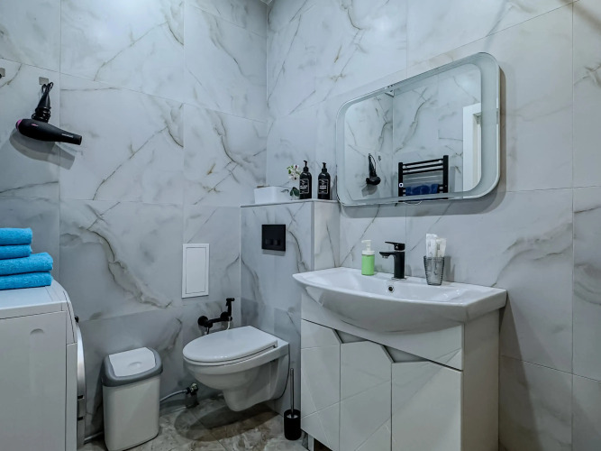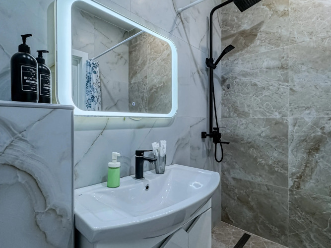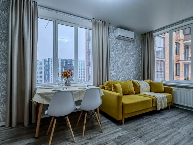 Апартаменты оборудованы двуспальной кроватью, диваном, телевизором, шкафами для хранения вещей. Кухня оснащена необходимой техникой и посудой. Имеется сплит-система, стиральная машина, гладильные принадлежности, Wi-Fi. Предоставляются гигиенические средства, постельное бельё и полотенца.
