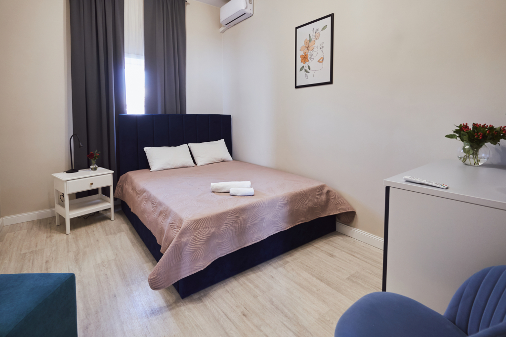 Отель Икра, адрес на карте Астрахань, улица Куйбышева, д. 76, с характеристиками номеров и правом онлайн бронирования на площадке vashotel.ru , стоимость проживания и удобства.