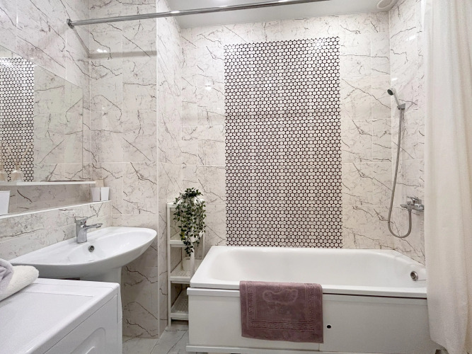 В распоряжении гостей – оборудованная кухня, где имеются газовая плита, холодильник, микроволновая печь, капсульная кофемашина, электрический чайник, а также посуда и приборы для приготовления пищи. Также в апартаментах имеются стиральная машина, телевизор с функцией Smart TV, утюг, фен.