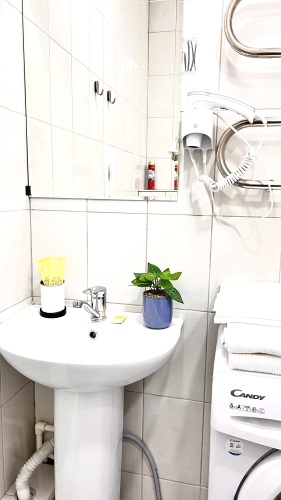 Для удобства гостей в квартире есть одноразовые средства гигиены, утюг, гладильная доска и стиральная машина.