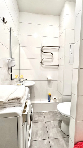 Для удобства гостей в апартаментах есть одноразовые средства гигиены, утюг, гладильная доска и стиральная машина.