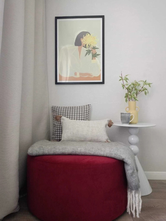 Квартира меблирована и оборудована базовым набором предметов для проживания. В наличии кровати, диван, кресла, рабочая зона и кухня.