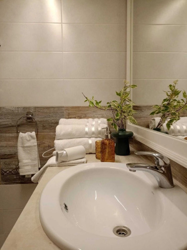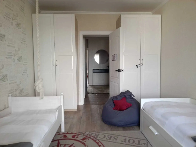 Планировка и оснащение: кухня-гостиная площадью 24 кв.м, две спальни с кроватями 160х200 см и 180х200 см, отдельная комната с двумя односпальными кроватями, раскладной диван на 2 спальных места, телевизор и Wi-Fi, стиральная машина, холодильник, плита с духовкой, микроволновая печь, чайник, посуда, кухонные принадлежности, система хранения, сушилка, утюг, гладильная доска, фен, постельное бельё и полотенца.