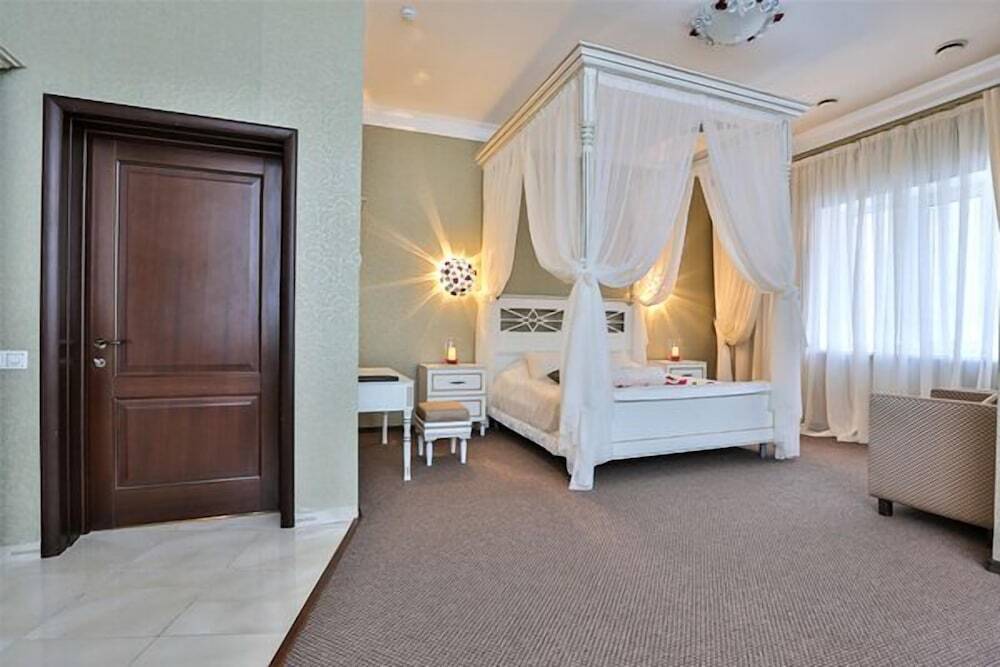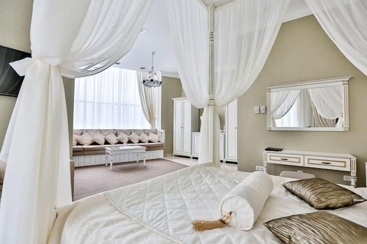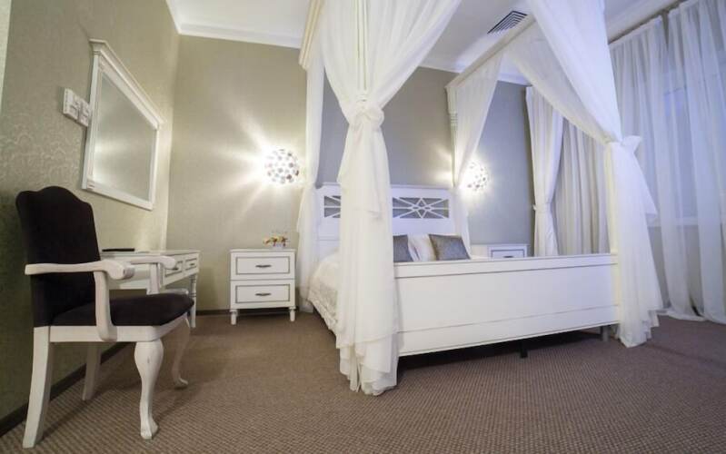 Номер уютно обставлен и оснащён необходимым, чтобы отдохнуть после долгого и насыщенного дня. Имеются телевизор и халат. Оснащение зависит от выбранной категории номера.