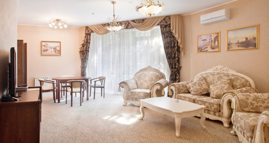 Отель предлагает для размещения гостей 69 номеров европейского уровня. В каждом номере есть индивидуальный электронный сейф, бесплатный интернет, телефонная связь, мини-бар, халат, тапочки, система кондиционирования. Для безопасности гостей номера оснащены электронными замками. Во всех номерах отеля есть балкон, а из окон виден сосновый бор.