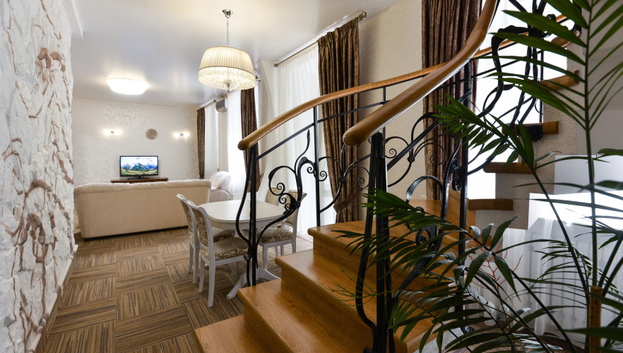 В номере вы найдёте телевизор, халат и тапочки. Оснащение зависит от выбранной категории номера.