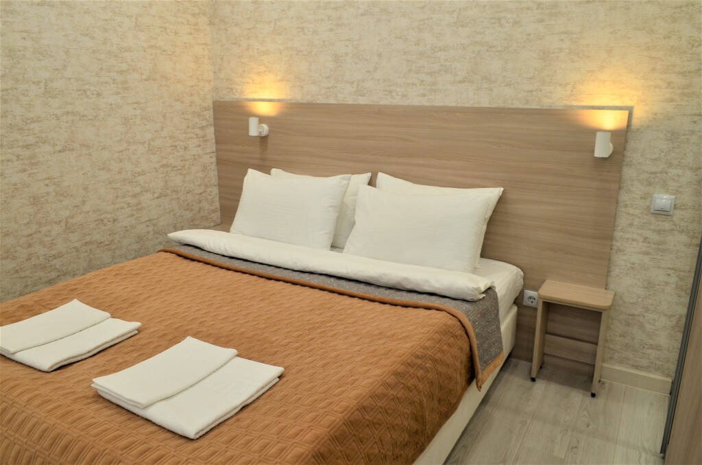 В номере вас будут ждать телевизор и халат. Оснащение зависит от выбранной категории номера.